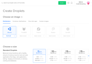 สิ่งแรกที่ต้องทำหลังจากได้ account มาคือการ Create Droplets หรือเรียกง่ายๆ คือการสร้าง Virtual server นั่นเอง หลังจากคลิกเพื่อสร้าง server จะมีตัวเลือกของ server ขึ้นมาให้