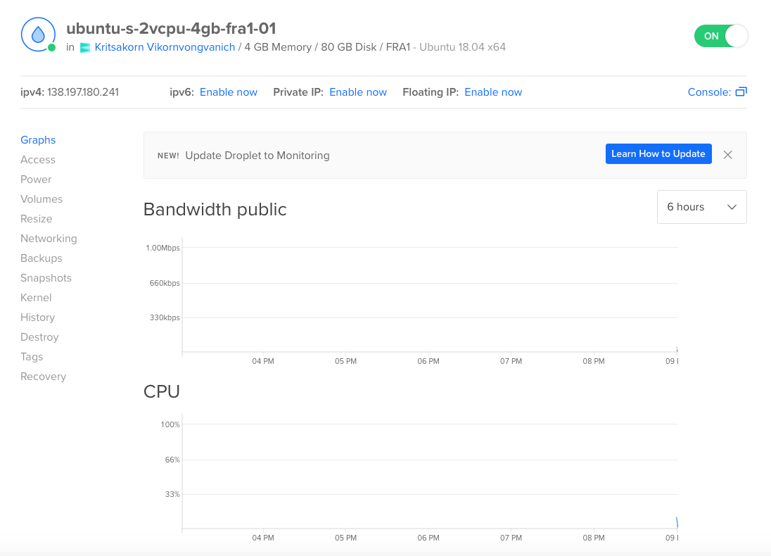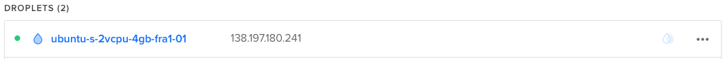 หลังจากสร้างเสร็จเราก็จะเห็นชื่อ server ปรากฏอยู่ในหน้า droplets ดังรูป
