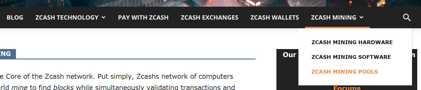 วิธีที่ดีที่สุด คือการเข้าไปดูที่ official webpage ของเหรียญนั้นๆครับ ผมเข้าไปที่เวป https://www.zcashcommunity.com/ และเข้าไปที่เมนู Zcash Mining> Zcash Mining Pools