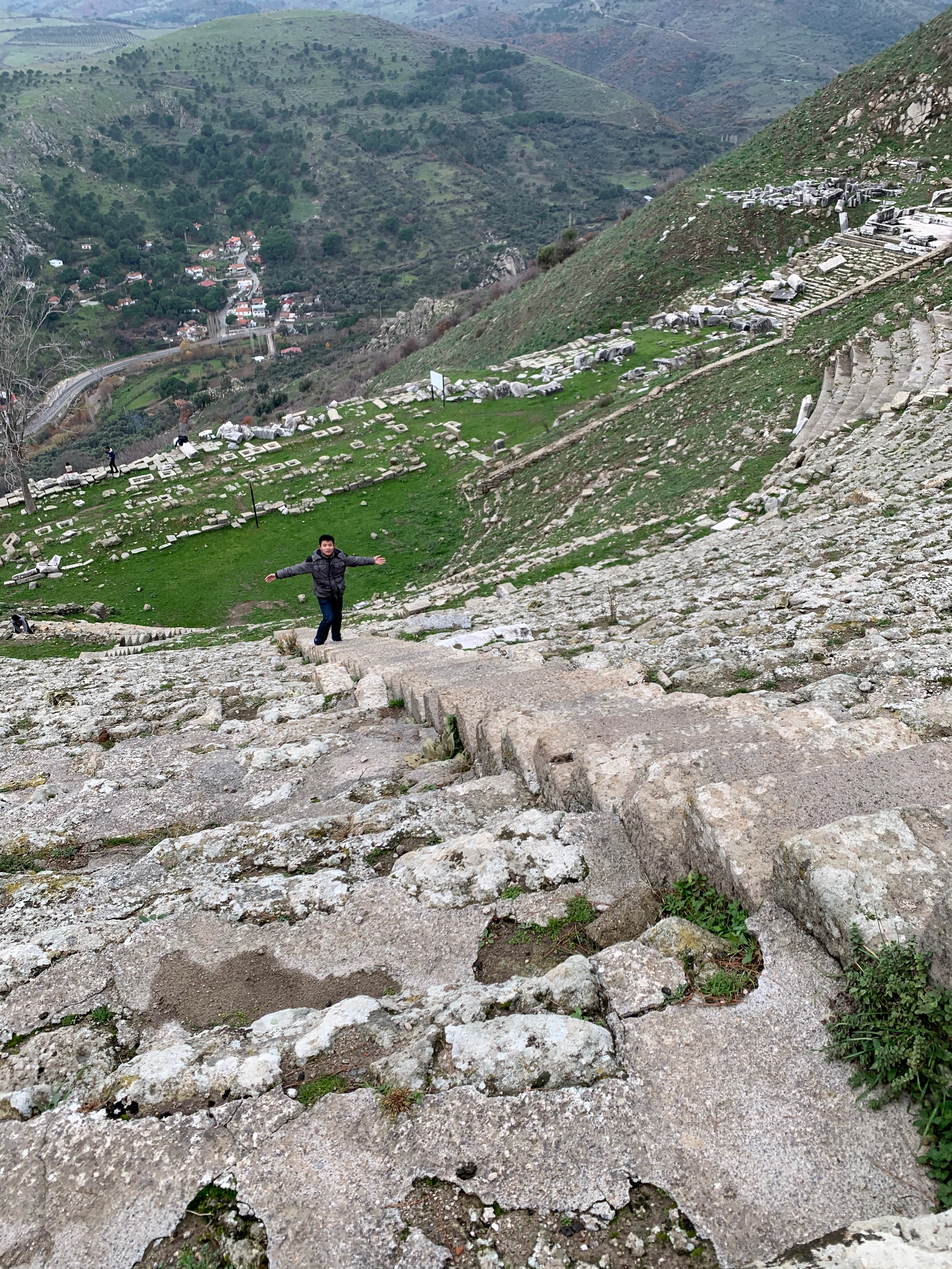 ตอนบ่ายไป เมืองโบราณเอฟิซัส ที่มีโรงละครกลางแจ้งที่ชันที่สุดในโลก เพราะสร้างบนหน้าผา ต้องขึ้นกระเช้าไฟฟ้าขึ้นไป ระหว่างเดินเล่นที่นี่ทำให้อดคิดไม่ได้ว่าคนในยุคนั้นต้องชอบดูละครมากเลย เพราะต้องเดินขึ้นเขามาตั้งนานกว่าจะได้มาดูละครที่นี่ อีกคำถามที่ผุดขึ้นในใจคือคนที่นั่งชั้นสูง ๆ มันจะเห็นเวทีเล็กนิดเดียวเอง สมัยนั้นไม่น่าจะมีกล้องส่องทางไกลและเครื่องขยายเสียง เขาจะมองเห็นหรือได้ยินได้อย่างไร งง