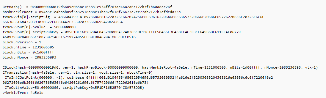 ด้านบนคือตัวอย่างของข้อมูลใน Ethereum blockchain บล๊อคแรก(ที่มีชื่อว่า genesis block) แปลงมาในรูปของ json file ซึ่งเป็นรูปแบบการเก็บข้อมูลบน internet ที่สามารถเปิดอ่านได้ด้วย text editor