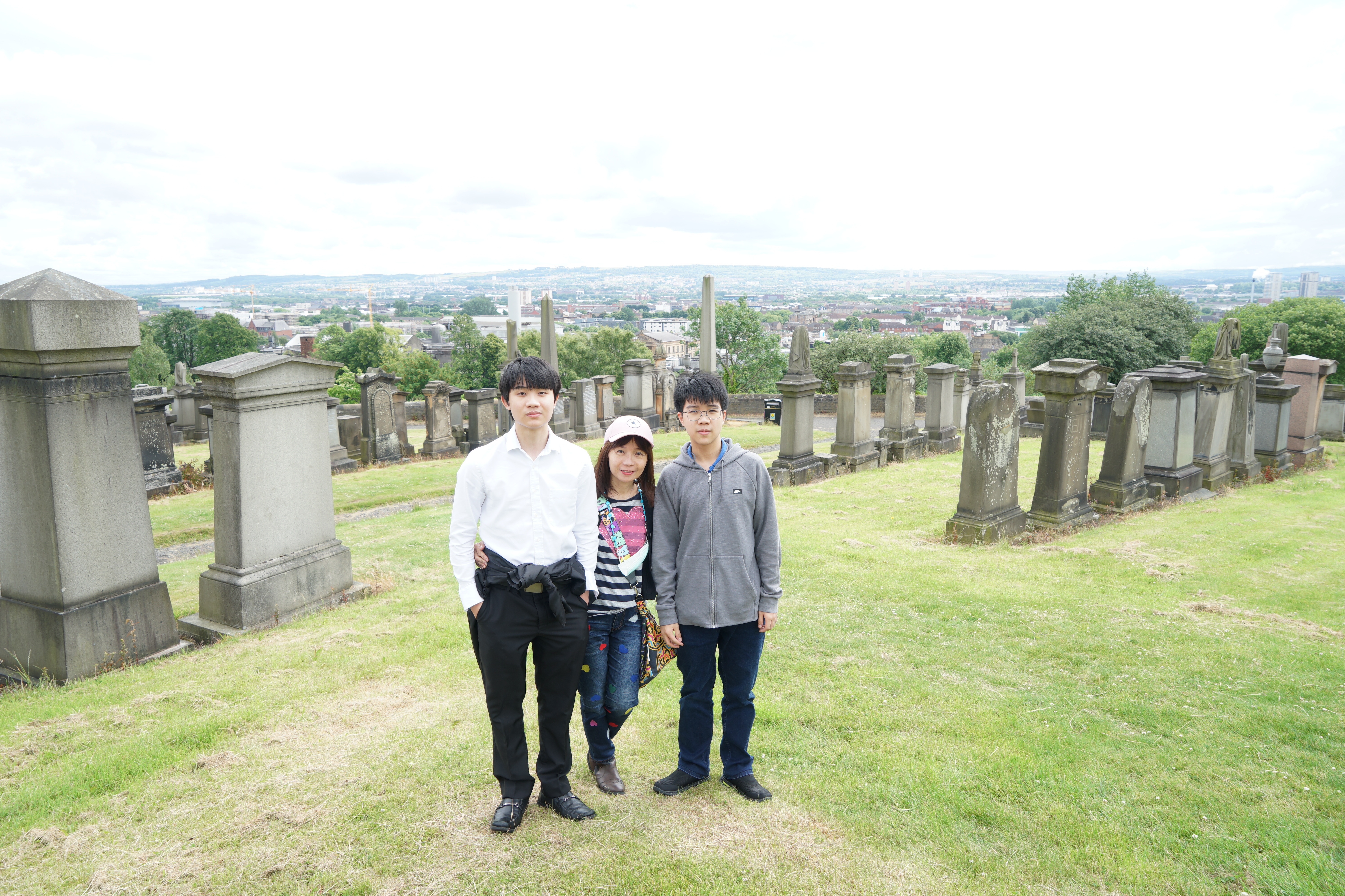 หลังจากทานอาหารเที่ยงพวกเราก็ไปแวะโบสถ์ Glasgow Cathedral เป็นโบสถ์ที่สวยงามที่สุดใน Glasgow และเปิดให้นักท่องเที่ยวสามารถเดินเข้าไปชมภายในโบสถ์ได้ ติดกับโบสถ์เป็นหุบเขาที่ไม่สูงมาก เชื่อมกับโบสถ์ด้วยสะพานคนเดิน หุบเขานี้เรียกว่า Necropolis หรือแปลเป็นไทยว่าป่าช้าใหญ่ นั่นเอง เป็นหุบเขาที่เต็มไปด้วยป้ายหลุมศพของขุนนางระดับสูงของสก๊อตแลนด์หลายชั่วอายุคน ว่ากันว่า มีศพฝังอยู่บนเขานี้มากกว่า 5,000 ศพเลย จากสุสานที่ควรจะน่ากลัวกลายเป็นสถานที่ท่องเที่ยวที่คนนิยมมาชมวิวของเมืองกัน