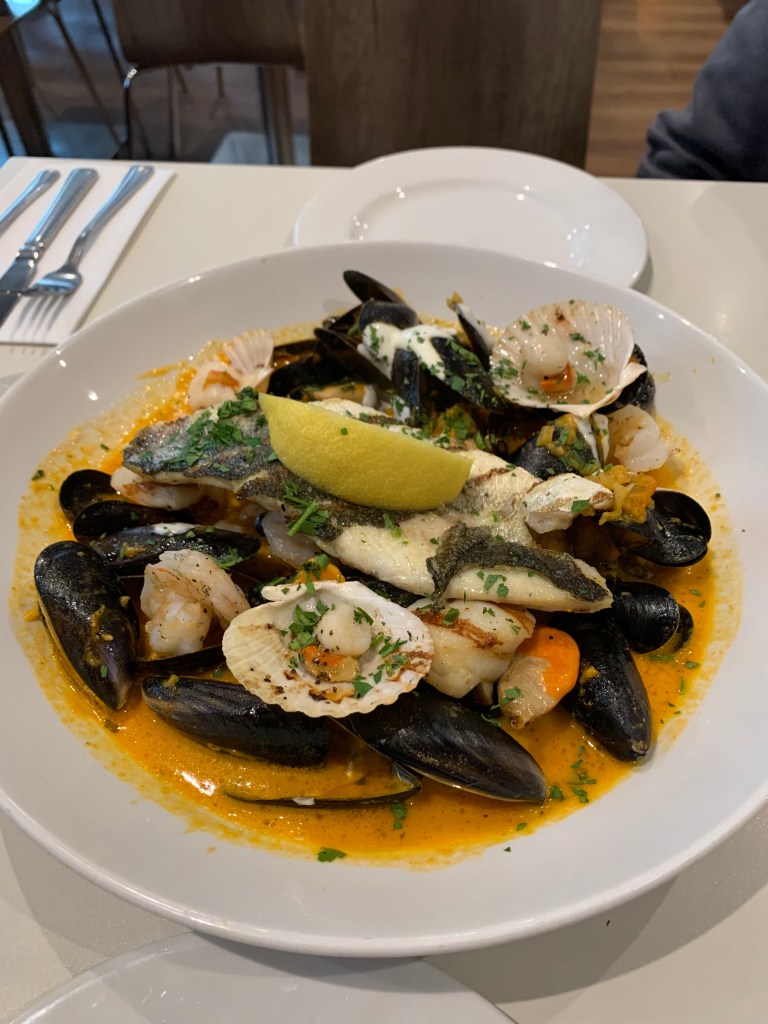 จบจากเที่ยวชมปราสาท พวกเราก็เดินเล่นตามถนนต่อสักพัก ก่อนจะไปที่ร้านอาหารเย็นที่จองไว้ ร้านนี้ชื่อ Mussel Inn เป็นร้านอาหารทะเลที่ได้รับ Award Winning Seafood หลายรางวัลเลย คนเต็มร้าน ถ้าไม่จองมาก่อนคงไม่ได้กิน เมนูที่ผมจะแนะนำคือ Hot Seafood Platter เฮ้ย! มันอร่อยจริง เป็นเมนูรวมสัตว์ทะเล ผัดฉ่าในซ๊อสเกรวี่สูตรพิเศษของทางร้าน แต่ราคาอาหารทะเลจะแรงหน่อย คุ้มค่ากับการจอง แต่ลูกๆผมไม่ชอบอาหารทะเล เลยสั่งเบอร์เกอร์ให้กินคนละชิ้น