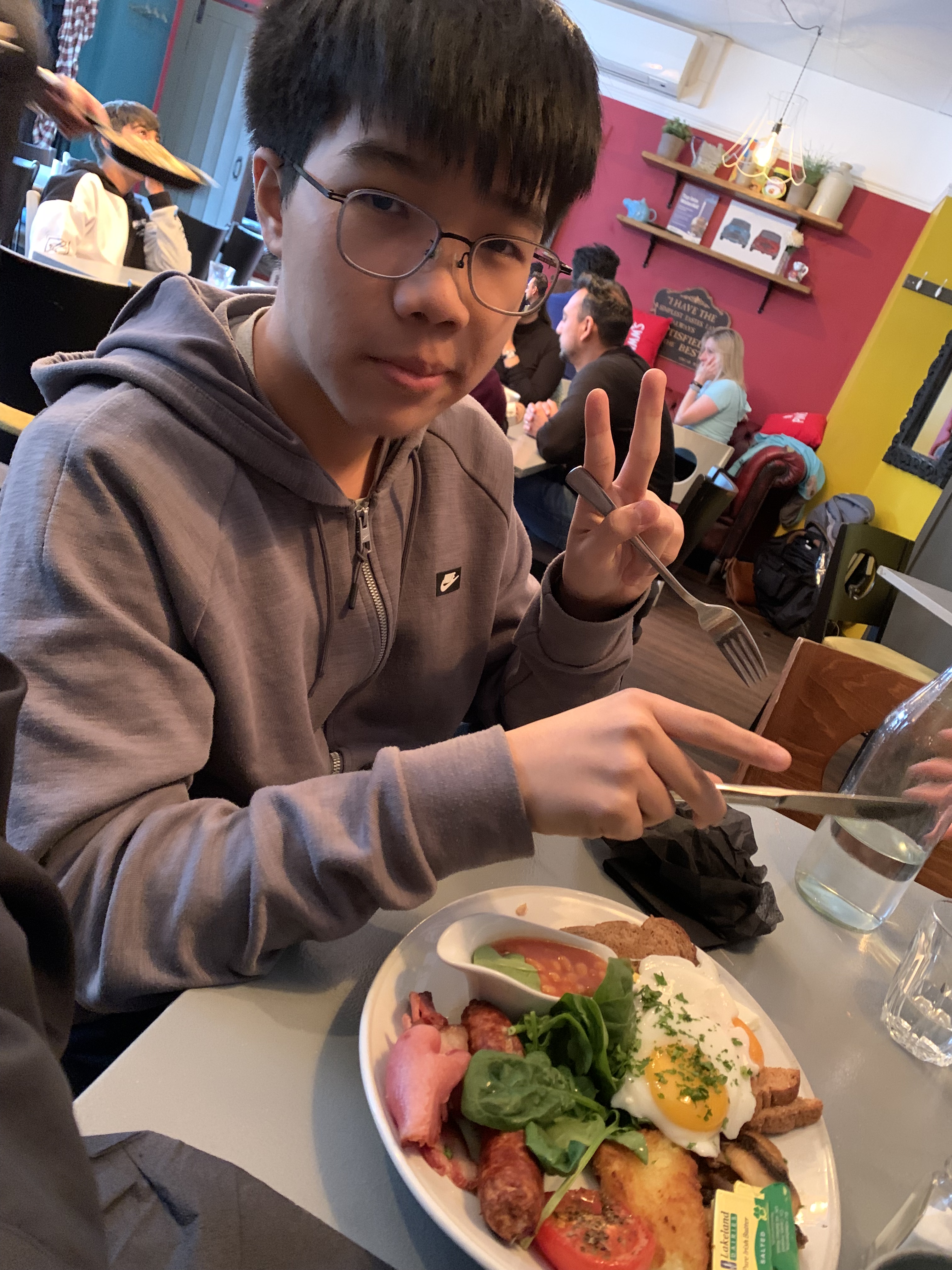 เราเดินเรียบคลองมุ่งตรงไปสู่ร้านอาหารเป็นที่แรก ชื่อ Ju Ju’s cafe เป็นร้านที่ตกแต่งสไตล์วินเทจ ผสมผสานกับสีกำแพงที่เบรคกันอย่างรุนแรง โดยผนังจะแขวนรูปโบราณของเมืองเอาไว้เต็มฝาผนัง ในร้านเต็มไปด้วยครอบครัวใหญ่มานั่งกินข้าวกัน กว่าเราจะได้โต๊ะก็ต้องยืนรอสักพัก เราได้โต๊ะตอน 11:45am ผมเริ่มสั่งอาหารเที่ยงตามเมนูทันที่ที่ได้โต๊ะ เจ้าของร้านบอกพวกคุณจะสั่งอาหารเที่ยงไม่ได้ เพราะตอนนี้ยังไม่เที่ยง คุณสั่งได้แต่อาหารเช้า โอ้โห? ทำไมมันเข้มงวดอย่างนี้ ภายหลังได้คุยกับคนขับรถถึงทราบว่า ร้านค้าพวกนี้มี license ที่ต้องปฏิบัติตามอย่างเคร่งครัด ไม่งั้นจะถูกปรับหรือยึดใบอนุญาติ เนื่องจากคนเยอะมาก กว่าเราจะได้อาหารที่เราสั่งไปก็เกือบบ่ายแล้ว พวกเราเลยได้กินอาหารเช้าหลังเที่ยงกัน แปลกดีมั๊ย?