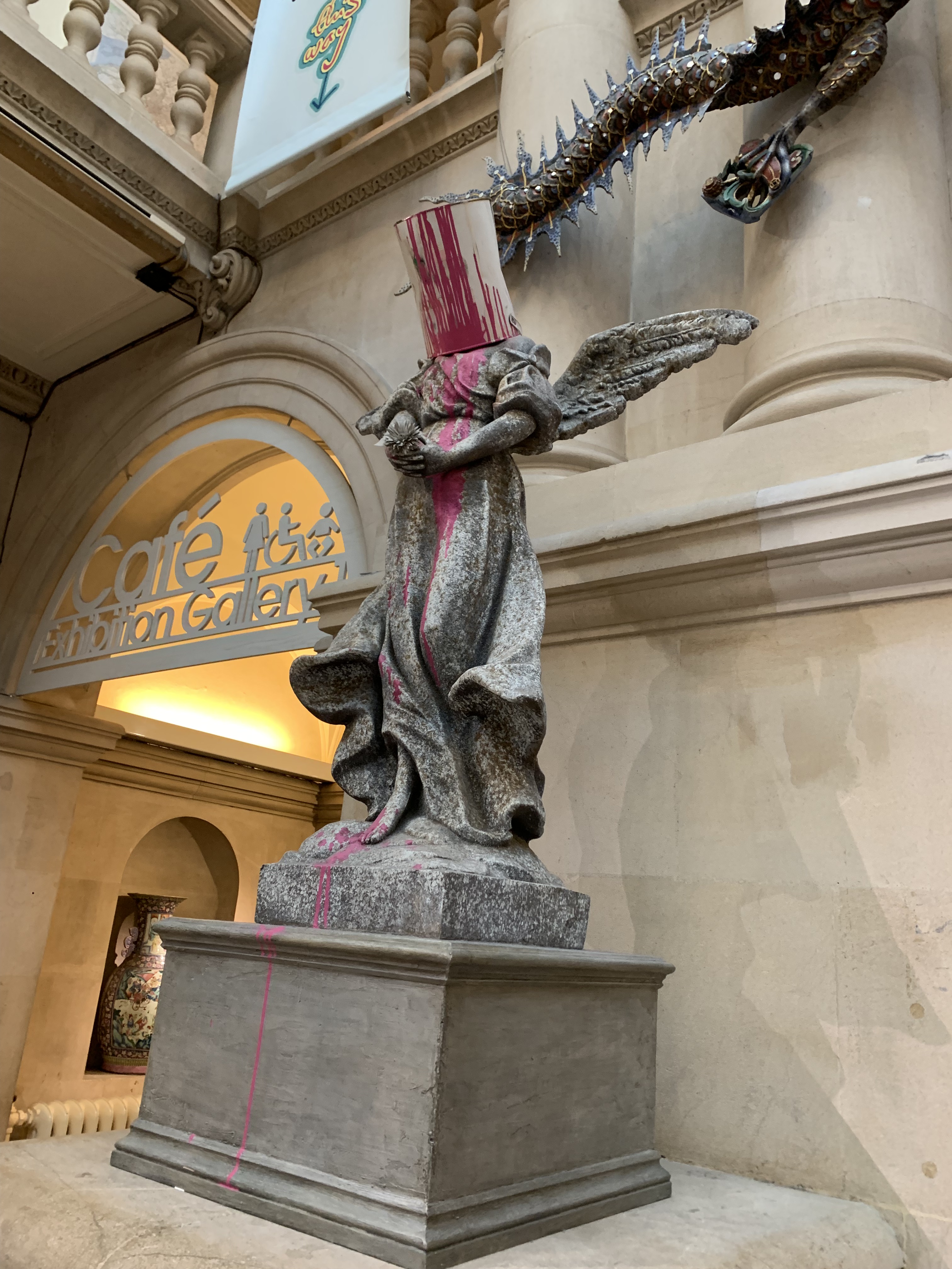 ระหว่างรอนาโนพวกเราก็เดินชม Bristol museum & art gallery ซึ่งเข้าชมฟรี รอจนนาโนกลับมา ในพิพิธภัณฑ์จะมีทั้งส่วนของฟอสซิลสัตว์โบราณ สิ่งประดิษฐ์ของมนุษย์ เหมือนที่อื่นทั่วไป แต่ในส่วนของงานศิลปะจะออกแนวกบฎหน่อยๆ ซึ่งน่าจะได้แรงบันดาลใจมาจากงานของศิลปินชื่อดังของเมืองนี้ที่ชื่อ Banksy ซึ่งเป็นศิลปินแนว Street art ที่มีงานของเค้าวาดอยู่ทั่วทั้งเมือง บางคนมาเที่ยว Bristol เพื่อเดินตามหางานของเค้า แม้แต่ใน Google map ยังมีการระบุตำแหน่งของงานศิลปะเอาไว้ด้วย งานของ Banksy มักแฝงไปด้วยการเสียดสี สังคม และการเมือง ในพิพิธภัณฑ์มีการลอกงานของเขาเก็บไว้ให้คนชมด้วย