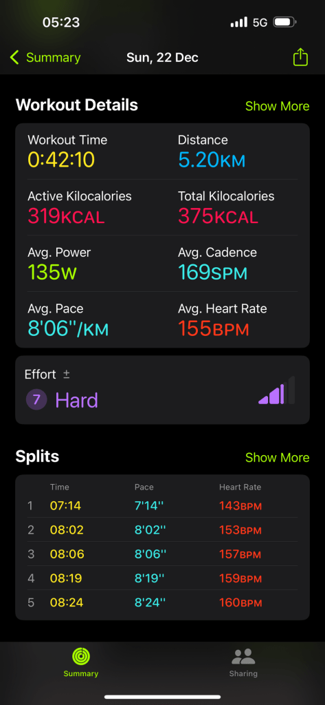 และนี่คืออีกหนึ่งวันสำคัญที่เตือนใจเราว่า การท้าทายตัวเองไม่จำเป็นต้องเร็วกว่าใคร แต่ขอแค่ชนะใจตัวเองก็พอ พวกเรามานั่งกินข้าวเช้าที่รายการวิ่งแจกกันข้างถนน และผมก็โชว์ผลการวิ่งให้ทุกคนดูว่า ผมสามารถควบคุมการเต้นของหัวใจไม่ให้เกิน 160 ในทุกระยะกิโลเลย