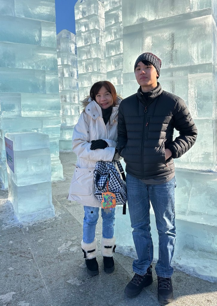 นี่มันเป็นกิจกรรมกลางแจ้งท้าลมหนาวทั้งวันเลย ลืมอ่านโปรแกรมให้ละเอียด แต่ร่างกายเราเจอมาหนัก ชินกับความหนาว กลายเป็นคนเลือดเย็นกันทั้งบ้านแล้ว ความสวยงามของเทศกาลหิมะทำให้เราลืมความหนาวไปชั่วขณะ ถ่ายรูปสนุก ตระการตาไปด้วยแสงสีสวยงามกับปฏิมากรรมน้ำแข็ง กลับถึงโรงแรมนอนหลับสบายถึงเช้าตามเคย