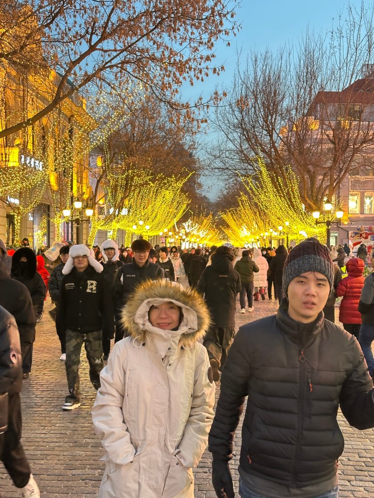 จบจากโบสถ์เราต้องเดินบนถนนสตาลินเพื่อไปดูอนุสาวรีย์ฝั่งหง และเดินเล่นบนถนนคนเดินจงหยาง แล้วถึงจะแวะกินอาหารเย็นกัน แต่โปรแกรมวันนี้มันไม่ได้จบแค่นี้ เพราะกินข้าวเสร็จ เราจะไปอยู่ที่เทศกาลหิมะฮาร์บิ้นกันต่ออีก 2 ชั่วโมง