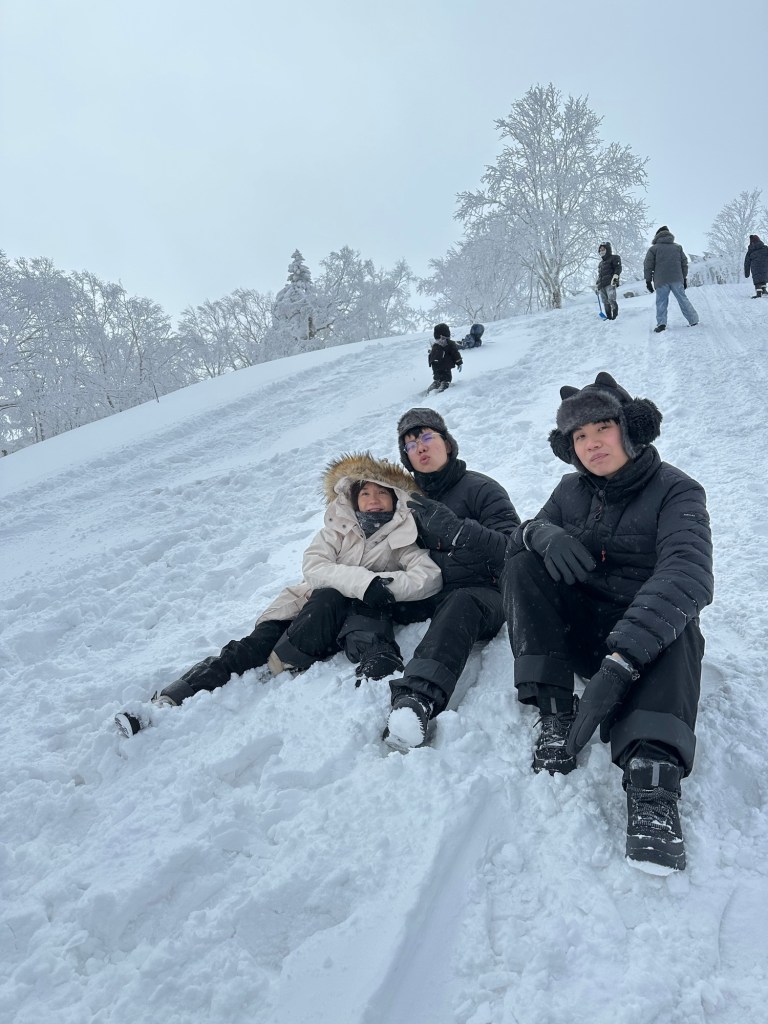 โปรแกรมทางเลือกต้องเสียเงินเพิ่มจากค่าทัวร์ มีทั้งหมด 4 โปรแกรมสำหรับสองวัน ช่วงเช้าเป็นการนั่งห่วงยางไถลไปบนหิมะ ครอบครัวเราไม่ได้เลือกโปรแกรมนี้ก็จะต้องนั่งดมบุหรี่ในห้องรับรองแขกของสถานที่เที่ยวไปหนึ่งชั่วโมง หลังจากแวะกินข้าวเที่ยงเสร็จก็เดินทางสู่ลานสกีกัน ผมและลูก ๆ เลือก Snow board แทนสกีขาคู่เพราะคิดว่าง่ายกว่า น่าจะเหมือน Surf skate ที่เล่นที่บ้าน